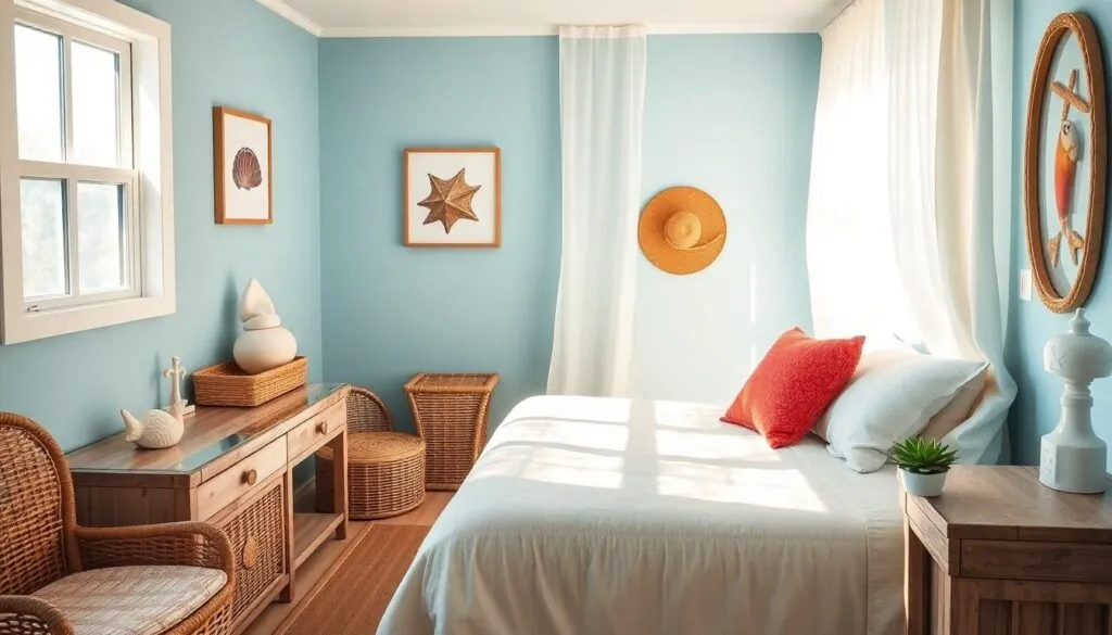 Imagine waking up to the sound of crashing waves and the scent of salty air, all without leaving your cozy abode. A beach-themed bedroom can
