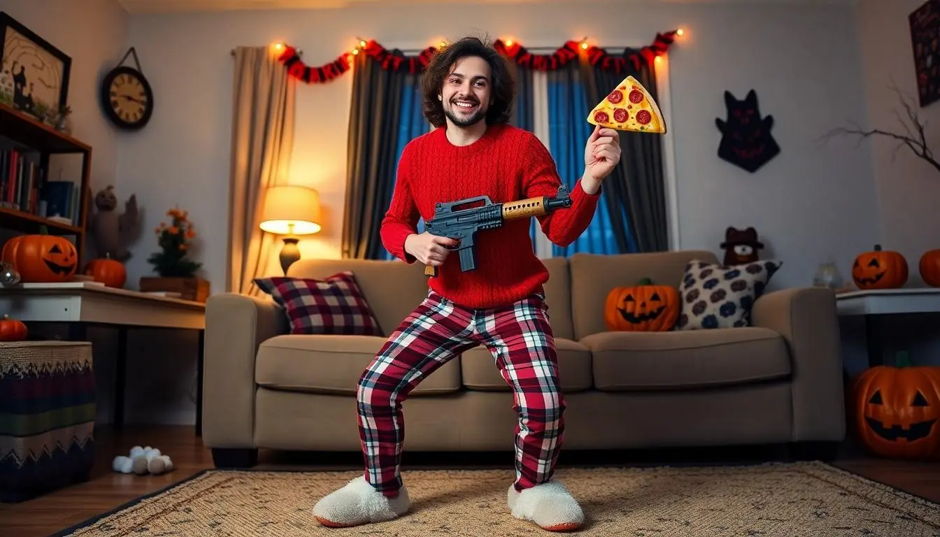 A classic representation of Kevin McCallister features a cozy red sweater and plaid pajama pants. The sweater can easily be found at thrift stores or online retailers. Pair these with simple accessories, such as fuzzy slippers and a toy BB gun for authenticity. Make-up can enhance the look, with smudged “dirt” to mimic Kevin’s adventures at home. A prop pizza slice will underscore his love for food in the movie, making the costume instantly recognizable and fun.
