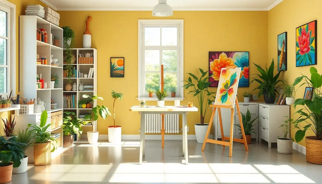 Setting up an art studio can transform any space into a hub of creativity. A designated corner in the living room can become an inspiring mini-studio. Natural light enhances creativity, so placing an easel near a window encourages fresh ideas.